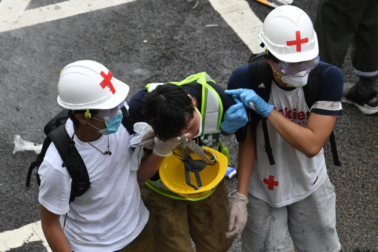 Wounded police and protesters were seen being carried away and Hong Kong's stock market was also hurt, closing down 1.7 per cent Wednesday.