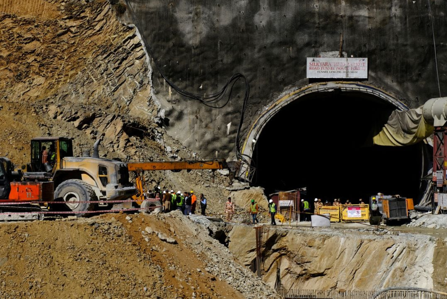 First images emerged on Tuesday from within the tunnel, showing workers in white and yellow hardhats standing in the confined space and communicating with rescuers, after a medical endoscopy camera was pushed through a smaller pipeline.
