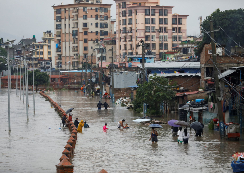 Television channels showed footage of people trying to bail flood waters out of their homes. Authorities have also asked residents near the eastern Sindhuli River to evacuate as the water rises.