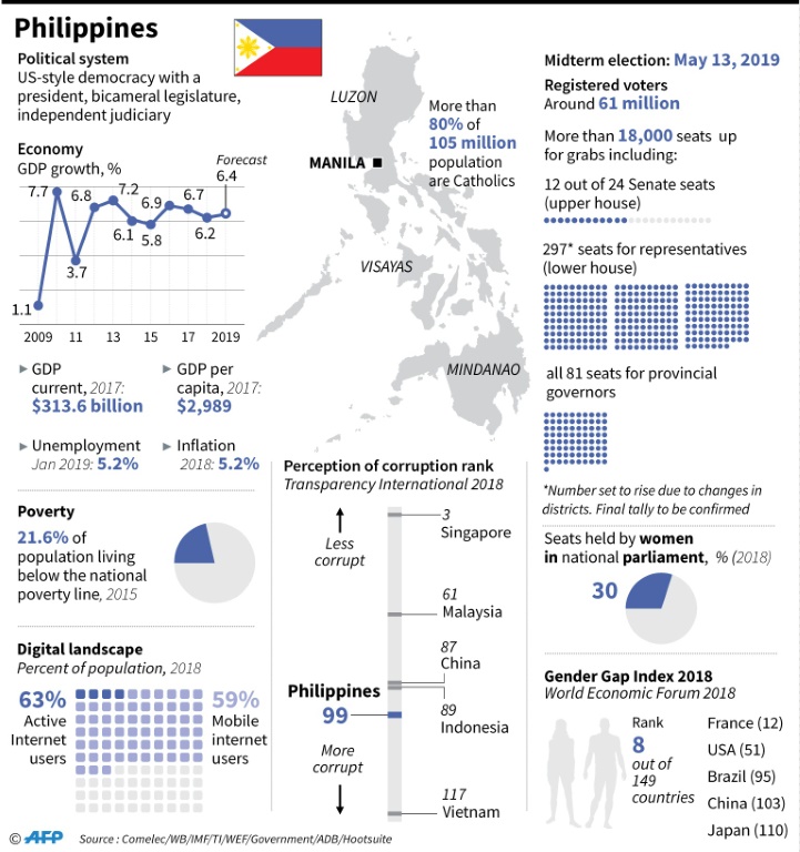 More than 18,000 positions are at stake, including half of the seats in the upper house Senate, which has served as a bulwark against some of Duterte's most controversial policies.