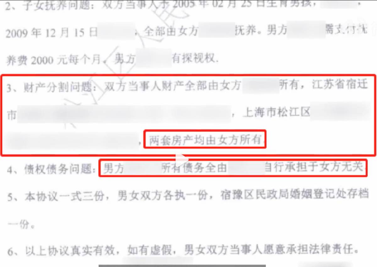The divorce agreement also stipulated that his ex-wife would not be liable for the debts of Zhou.