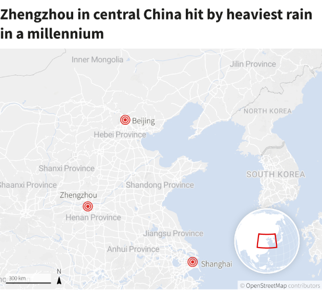 The rainfall in Zhengzhou over the three days was on a level seen only "once in a thousand years", local meteorologists said.