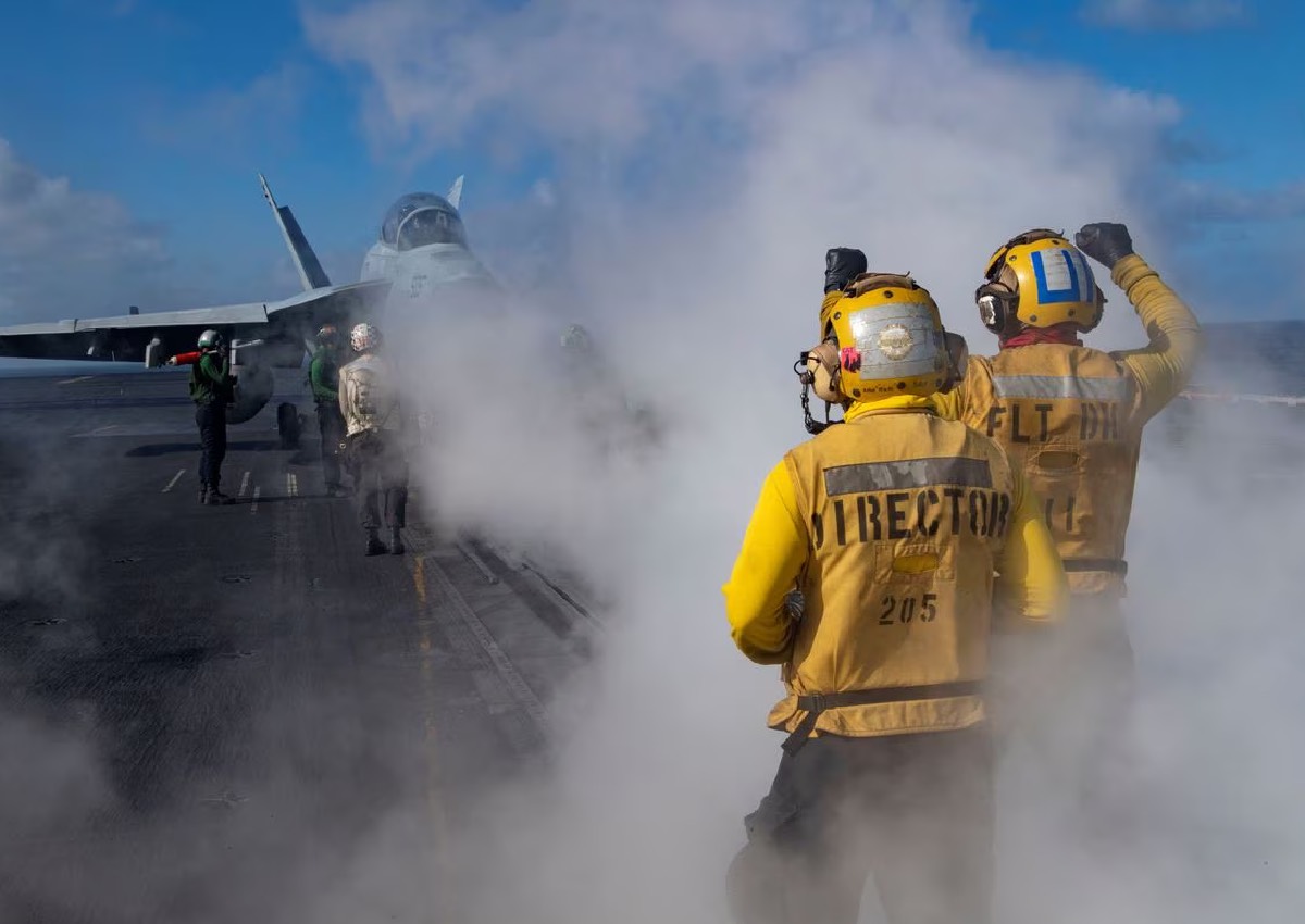 When at sea, US carriers fly almost constantly, routinely operating fighter, electronic-warfare and surveillance aircraft to create a protective screen around the battlegroup.