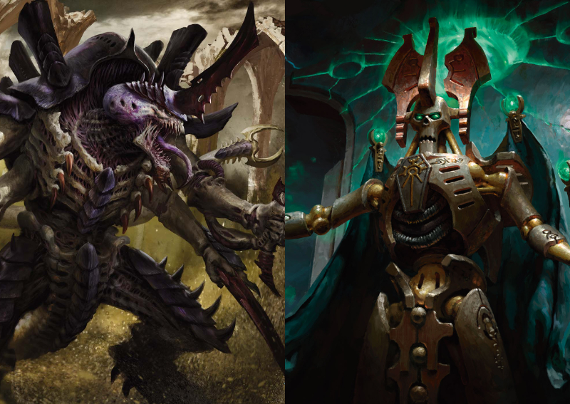 There are four Commander decks and each one is themed after one of the four factions — Imperium, Chaos, Tyranids and Necrons. The cards in the collector's edition of each Commander deck will have a new Surge Foil treatment.