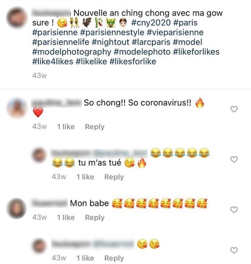 This resulted in the French woman doubling down on denying any form of racism by claiming that she has a masters degree and a diploma from Harvard about “ethnicity at work”. This, despite her friend commenting “So chong!! So coronavirus!!” on the post.