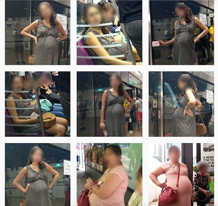 With over 5,000 followers, the Instagram account holds over 5,600 posts of random women in public, including on the MRT, in shopping malls or even on the streets. While most of the photos are of expecting women in Singapore, some posts appear to have been taken overseas, including Hong Kong.