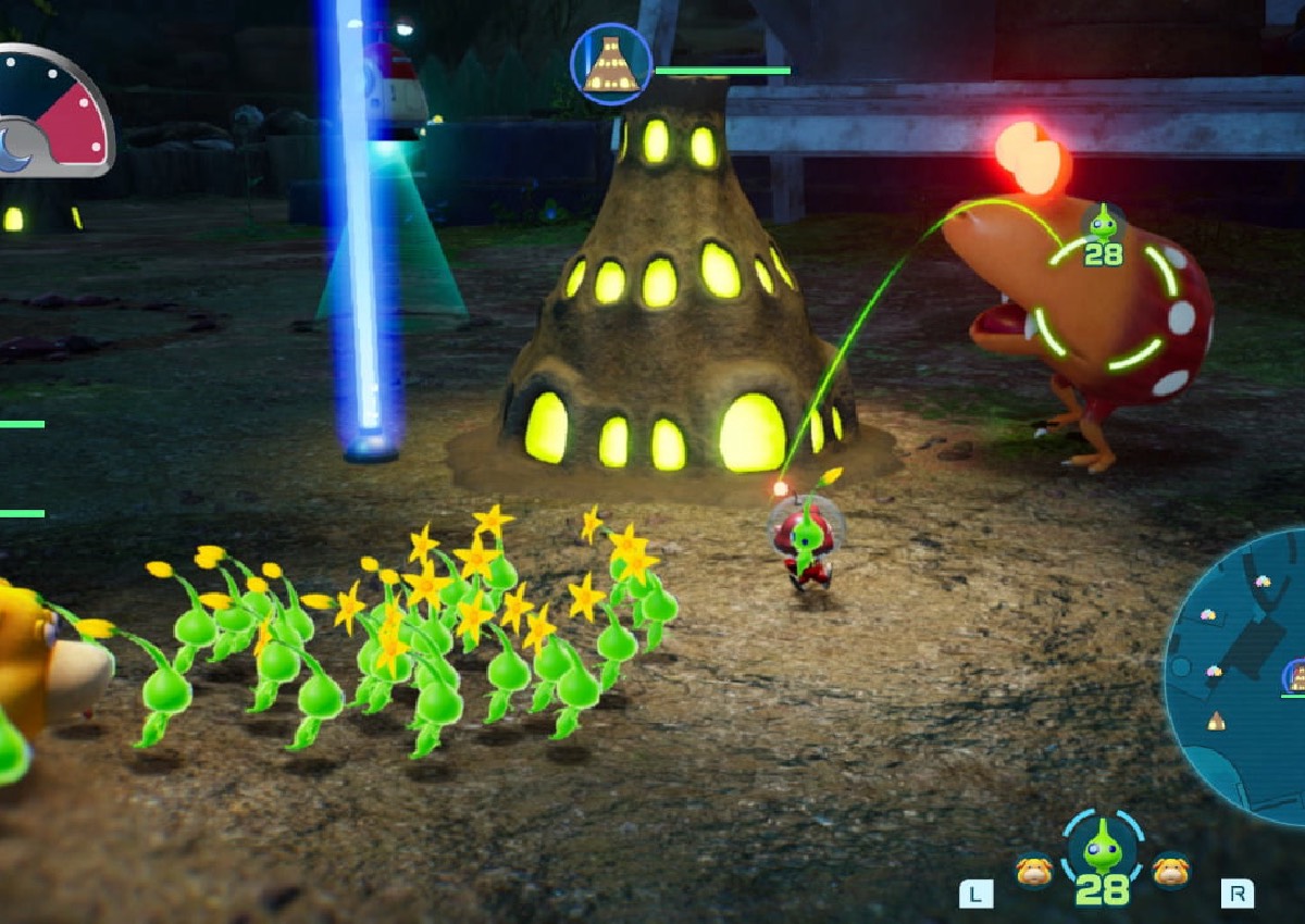 However, the creatures will go into a frenzy at night, so you will still have to be on your guard and use the new Glow Pikmin to drive them away.