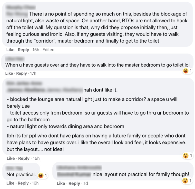 An unorthodox design for a four-room HDB flat has received more disapproval than praise this week for the extreme changes made to the layout of the flat.