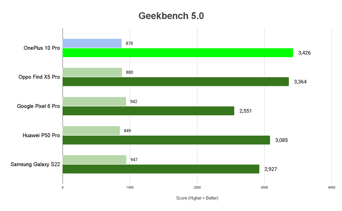 | OnePlus 10 Pro | Oppo Find X5 Pro | Google Pixel 6 Pro | Huawei P50 Pro | Samsung Galaxy S22 | |