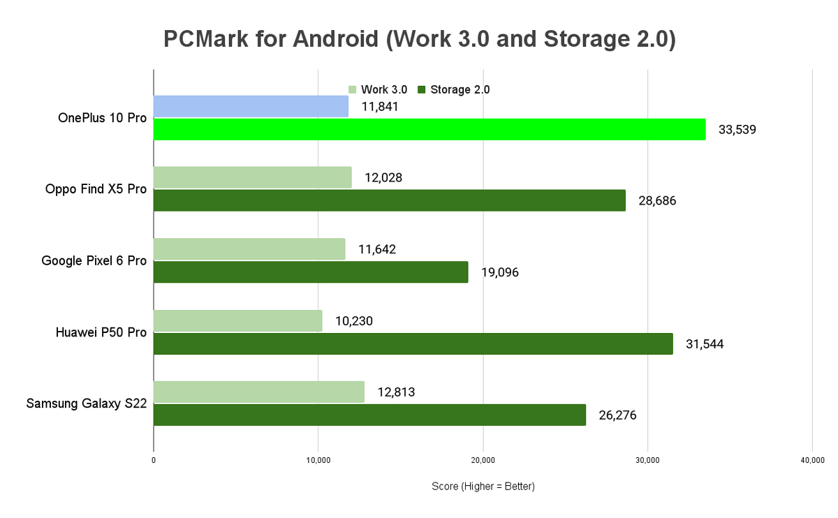 OnePlus' proprietary cooling techniques include a 3D Passive Cooling System that consists of a vapour chamber, copper foil, and copper carbon on both sides of the phone's motherboard. There's also a graphene cooling film built into the system. From our test results below, it does seem like its cooling system is allowing the OnePlus 10 Pro to perform at its peak and is able to maintain an edge over others.