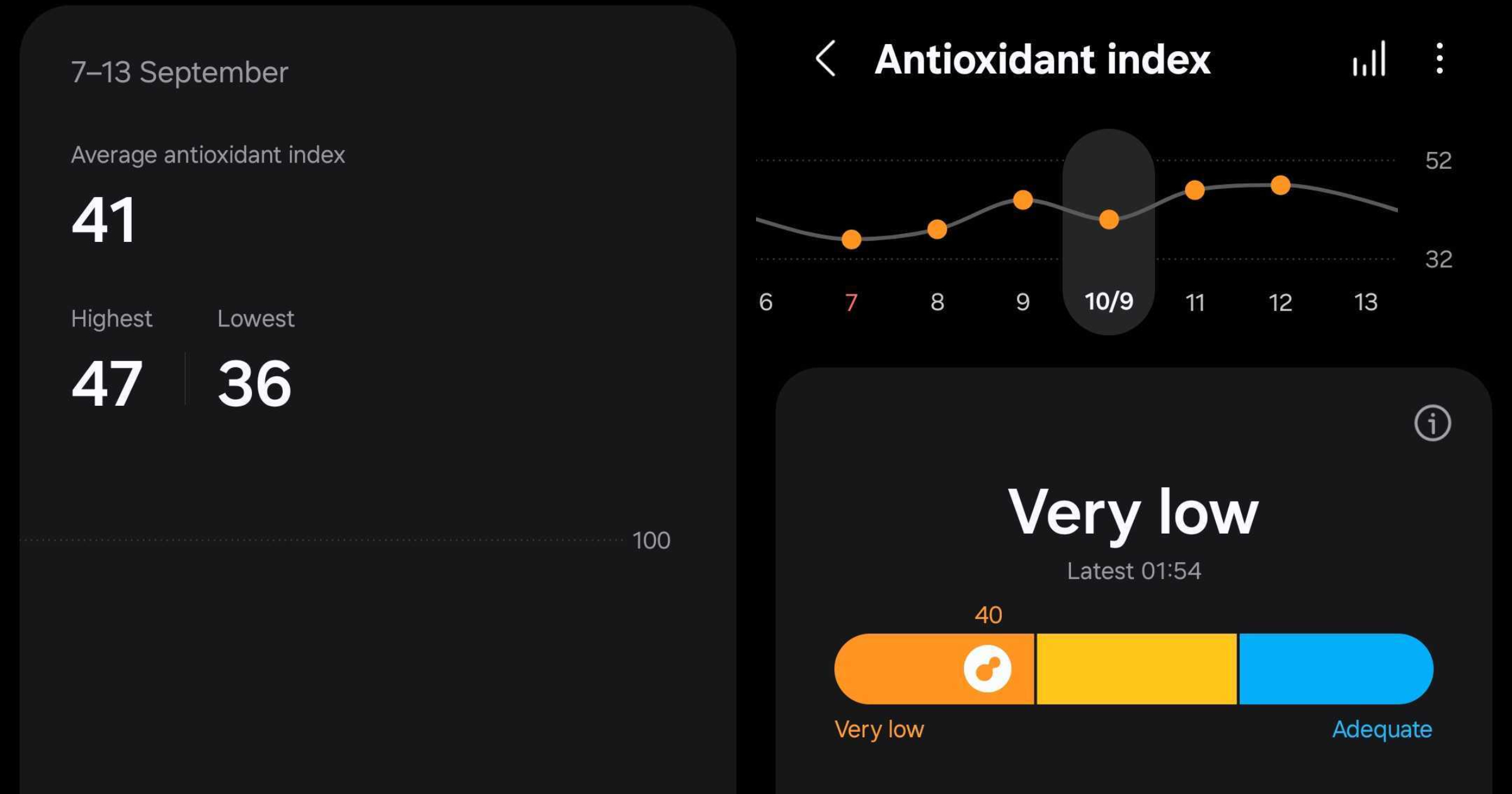 I was excited to try this feature, but was horrified to find out that my readings constantly fell into the "very low" category for the antioxidant index.