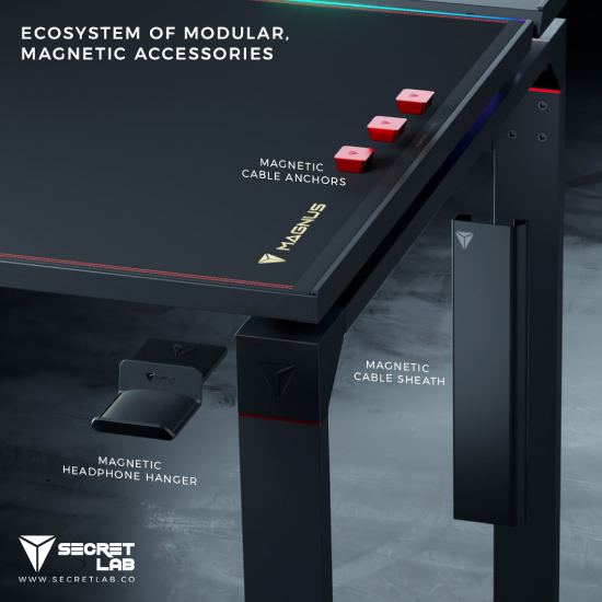 Engineered by their own team to complement their top-sellers like the TITAN Softweave 2020, the Magnus Metal Desk boasts magnetic accessories that adds to the functionality of the table, from holding down cables, supporting RGB light strips, to an innovative cable management system that is simple yet effective.