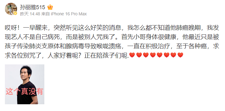 Chyi Chin's wife, Sun Liya, also denied claims that he had cancer.