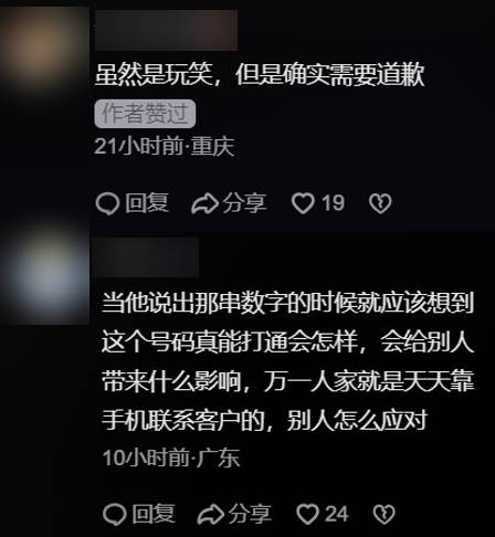 One of them commented: "When he said that string of numbers, he should have thought about the possibility of people really calling through to that number and how it would affect others. What if the person [whom the number belongs to] has to rely on their phone every day to contact their customers, how would they be able to manage it?"