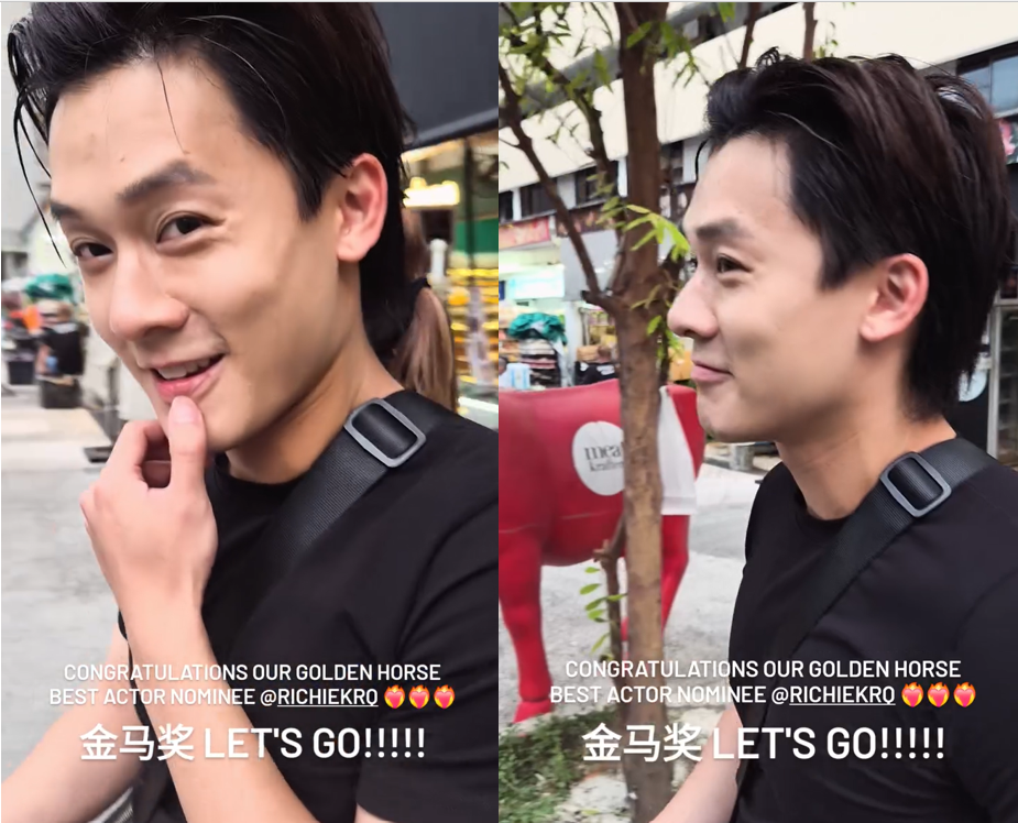 Richie's reaction to his Golden Horse nomination was captured by local actress Chantalle Ng in an Instagram Story yesterday, where the latter congratulated him. They are currently filming local drama The Grind, which is scheduled to premiere next January.