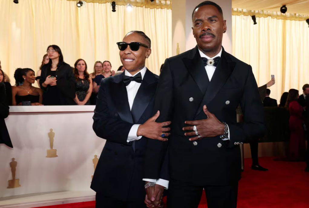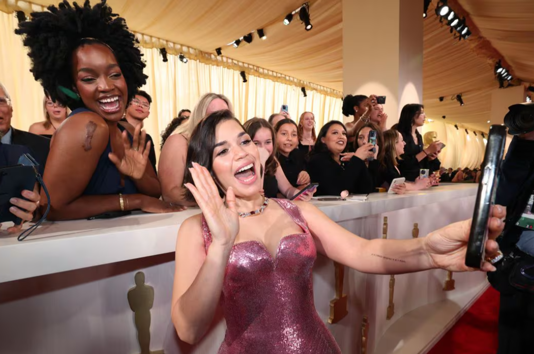 LOS ANGELES — Dresses with strong silhouettes, sparkles on both women and men and a splash of Barbie-inspired pink dominated the Oscars red carpet on Sunday (March 10).