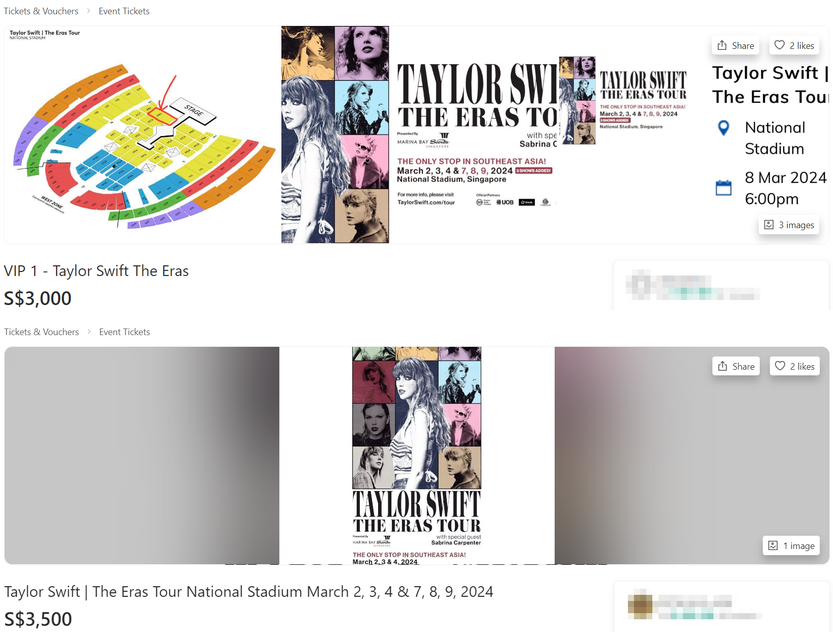 One seller had their listing up at around 1pm, selling four VIP tickets for a total of $3,888. It is unclear which VIP package they bought.