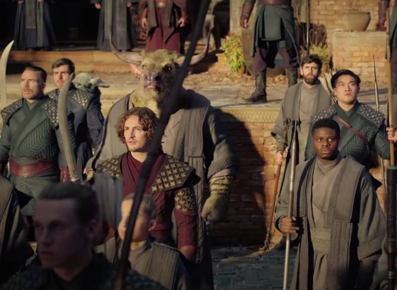 Fans first saw Rintrah appear in the movie's first trailer. Identifiable by his green fur, the trailer shows Doctor Strange hovering over a group of warriors, as a cloud of black smoke tumbles across the sky towards them. Viewers sense an impending threat looming and then the camera shifts to view the incoming threat from behind Rintrah's horns.