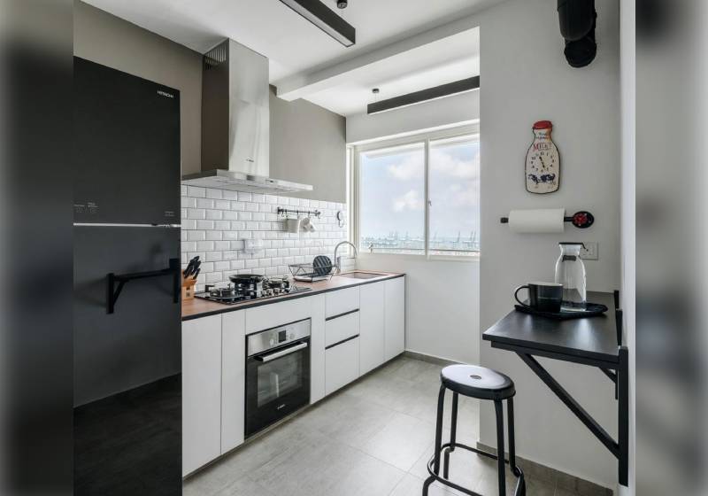 If you prefer a quick and unfussy breakfast to beat the morning rush, a dedicated but simple wall-mounted table inside the kitchen will do the job.