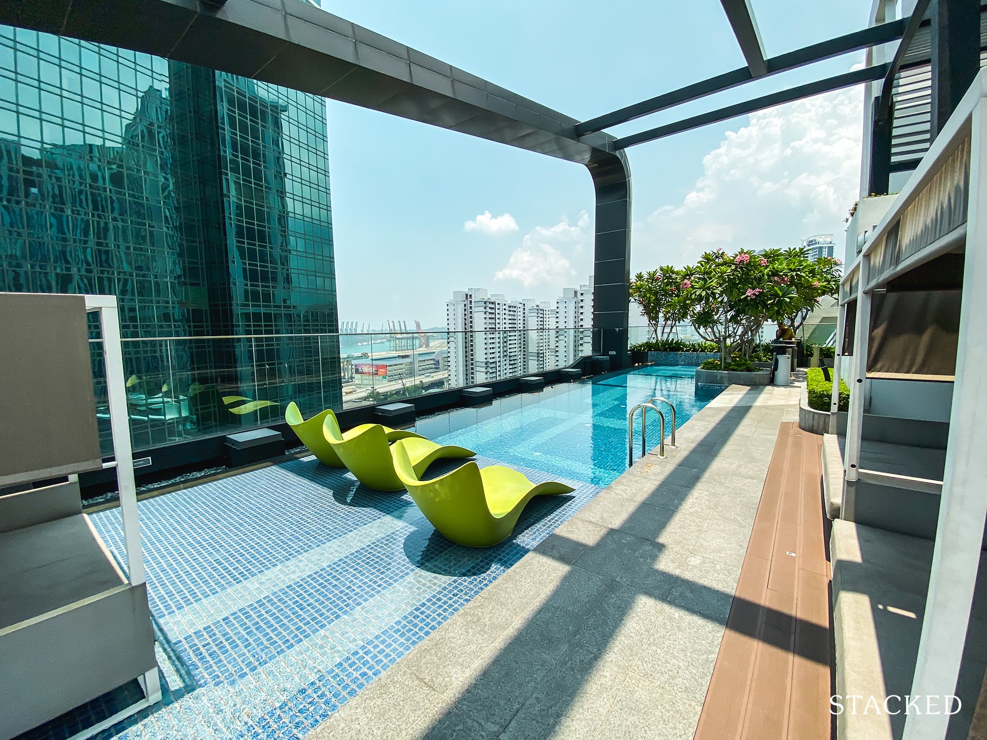 At just seven minutes from Tanjong Pagar MRT station (East-West line), this project is not in a family location. The surroundings are quite dense and built-up, and it helps that the rooftop pool gives residents a visual break from that.