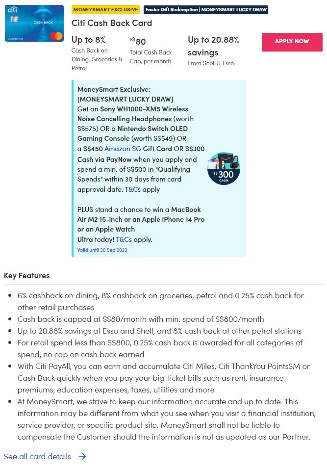 | Citi Cashback Card | 6% cashback on dining (min. $800 spend, cap $80 cashback) |