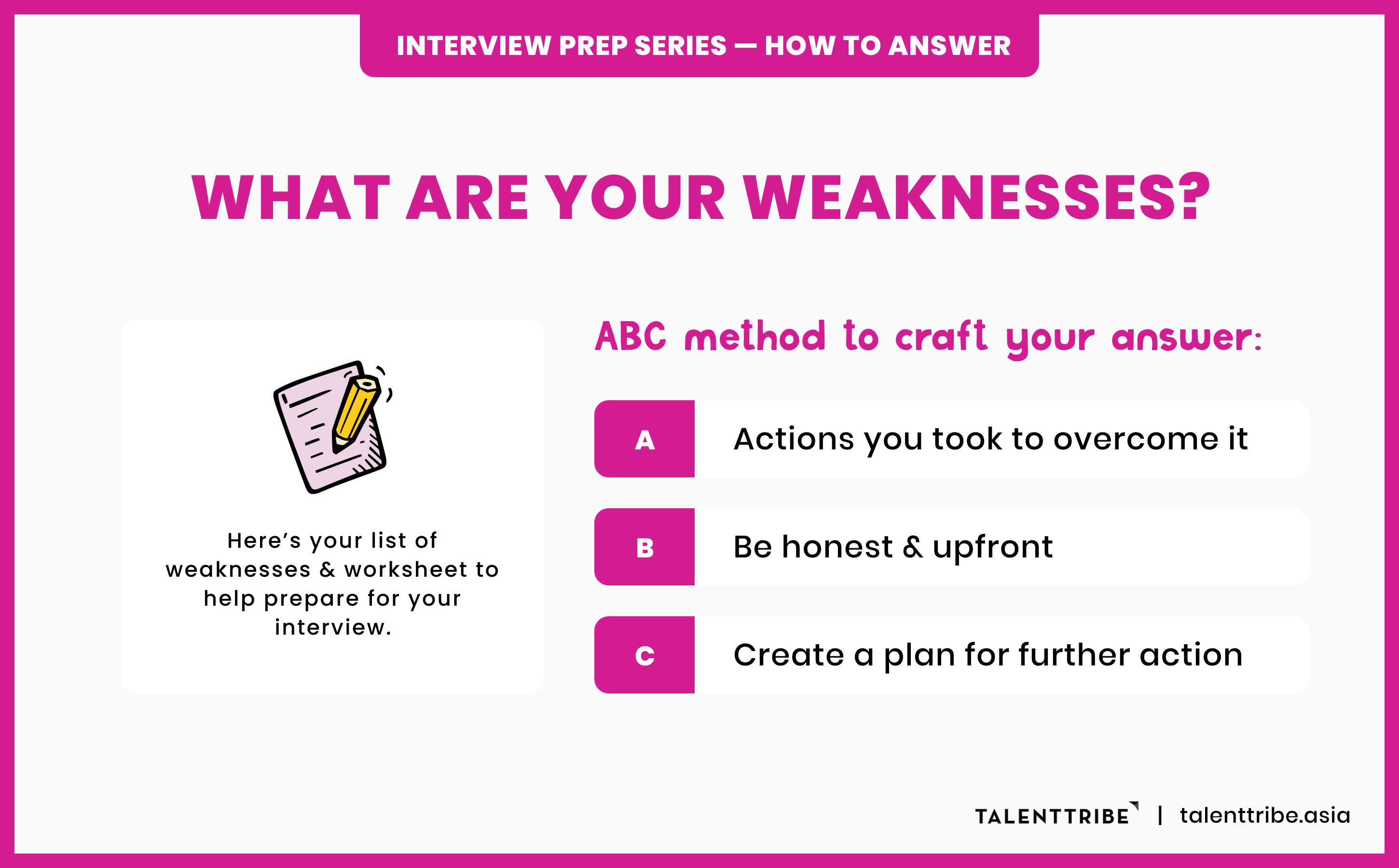 Remember: Keep your story concise and highlight the key takeaways. Leverage on your failure to accentuate your strengths. Don’t just tell the interviewer about the time you failed. Instead, let them know how you turned it around in your favour.