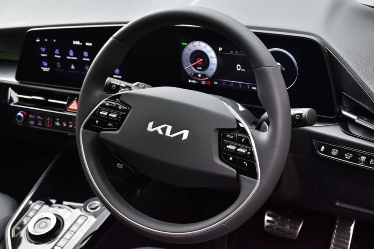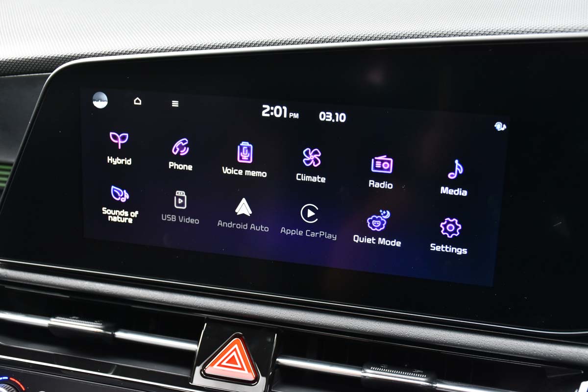 The interior is where it's all at, and the Niro Hybrid SX features a very contemporary flat panel, full-width video screen and a rotary drive mode selector. It's not quite the gigantic hyperscreen of the Mercedes-AMG EQS 53, but it does feel pretty spiffy. Actually, the Niro shares some components with the Hyundai Avante, and despite the different window dressing the controls and touchscreens do operate very similarly to present-gen Hyundais.