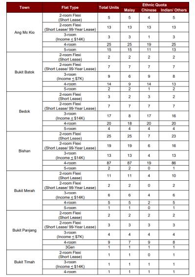 You can find flats of various types spread across the different estates in Singapore, as well as the race quota, put up for SBF.