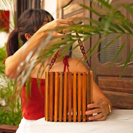 Helming the brand is entrepreneur and head designer Lyn Ng, who married her love for woodworking and fashion to create the label. One of our favourites? The Oval bag, which uses strips of wood to give the bucket bag a new spin.