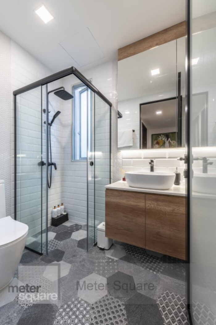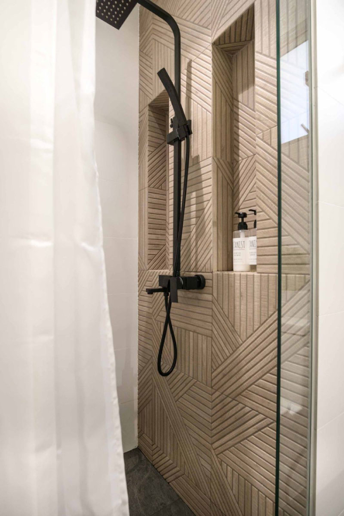 Like with recessed shelves, cladding them in a different tile will make them pop, doubling them as a design feature for your bathroom.
