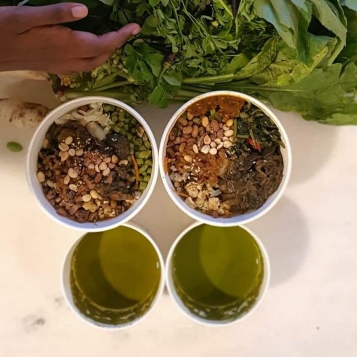 The signature dish: Thunder Tree Lei Cha Kolomee from organic vegetable farm Fire Flies Health Farm.
