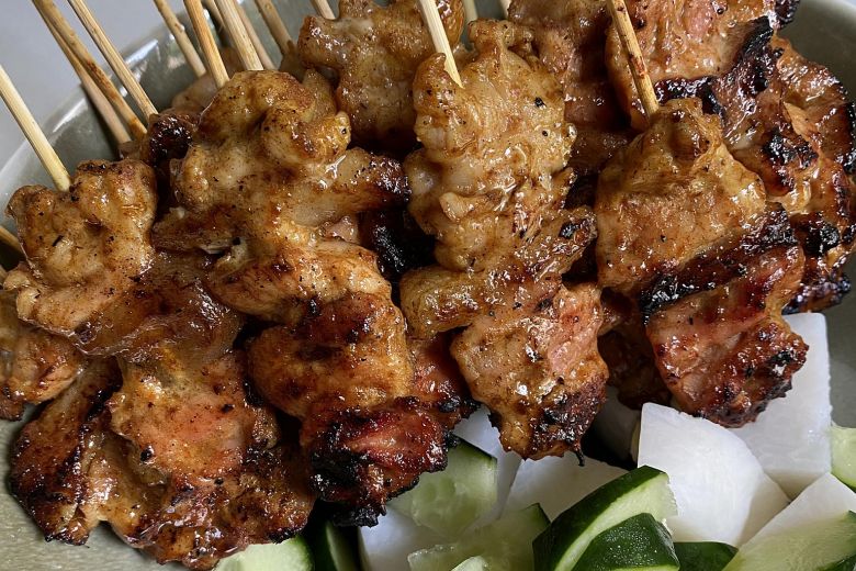 They derive from the Arab dish of kebabs on metal skewers. In Singapore, our satay is barbecued on wooden skewers or sometimes on dried, thin stems of coconut made into sticks. The ground peanut sauce we know and love is made with spices like coriander and cumin seeds.
