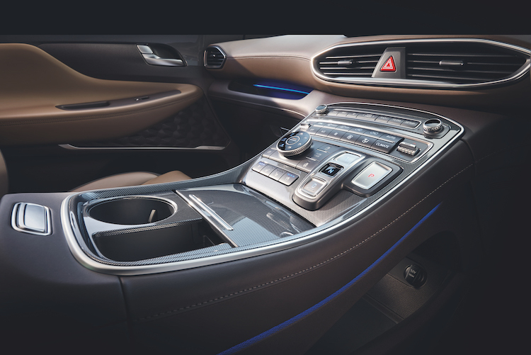 The new Santa Fe Hybrid interior elevates the vehicle to a new level of luxury, with every component finished in premium soft-touch materials. The Santa Fe Hybrid now has a new lower dashboard design that is reminiscent of a premium SUV interior.