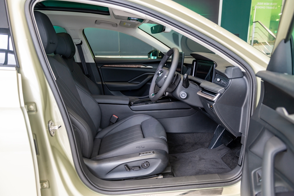 These include a Virtual Cockpit instrument panel, 13-inch touchscreen infotainment display, and Skoda Smart Dials, which are rotary dials with haptic and digital elements. Among other functions, these dials can be used to control the temperature and seat settings.
