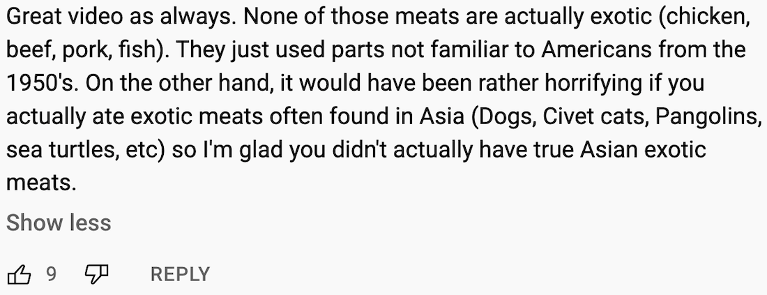 But there were also some who pointed out that what Sonny ate shouldn't really be considered exotic.
