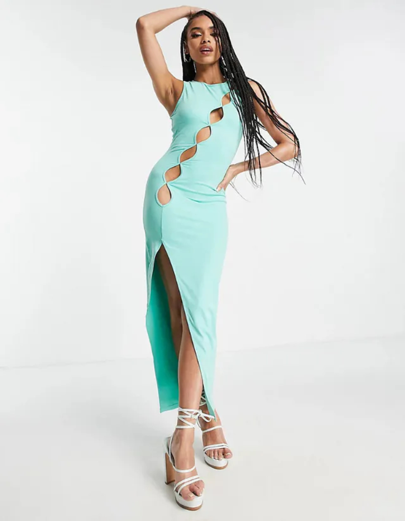 Hey, you wanted a dress that could help you stay ventilated and cool in the heat right? Maybe this will do. Plus, the bright turquoise colour is an instant mood-lifter, so you get double the win!