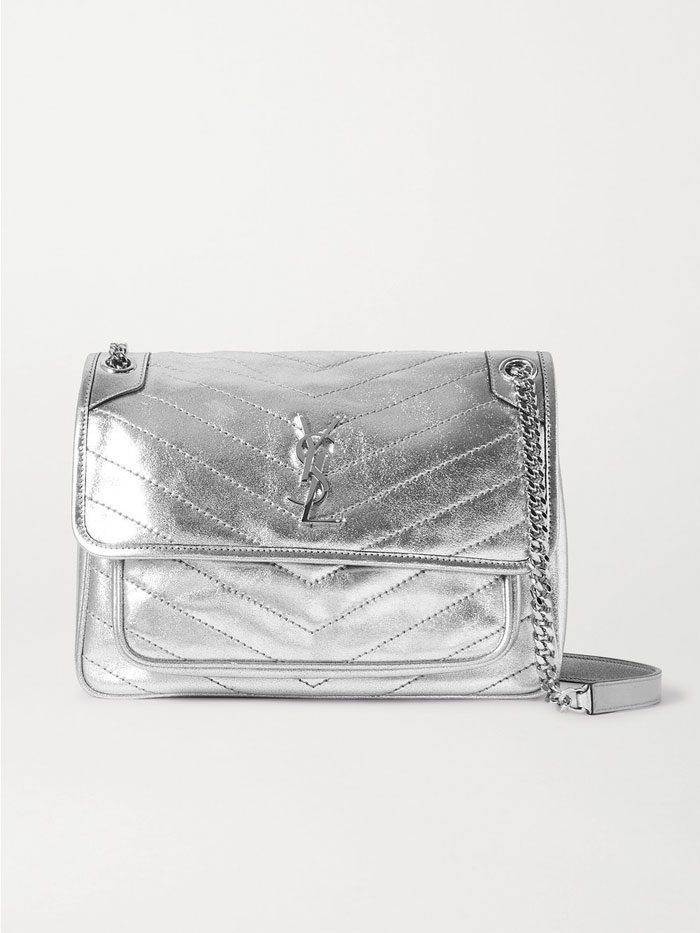 This 'Niki' bag, updated for Resort '20 in shimmering silver leather, is generously sized to fit your everyday essentials and has a pouch pocket at the front for smaller items.
