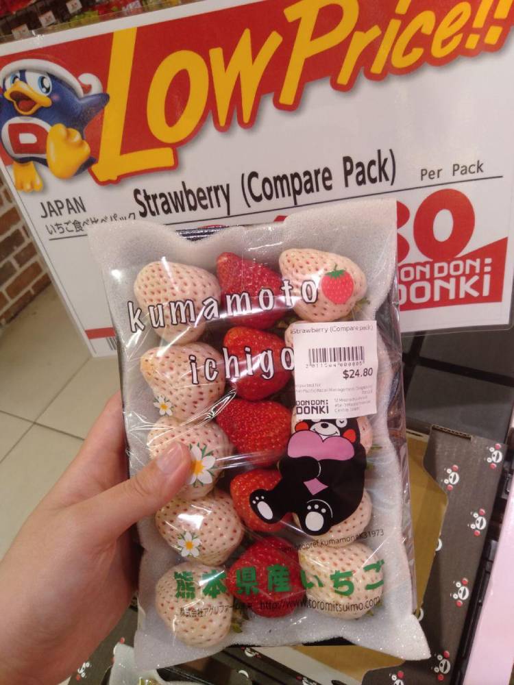 I don't know about you, but I've never seen pale pink strawberries in my life. Don Don Donki carries these unique, pale pink strawberries at ~$25 for a pack of 15 strawberries. While I was intrigued by the unique colour, I was rather intimidated by the steep price to make a purchase.