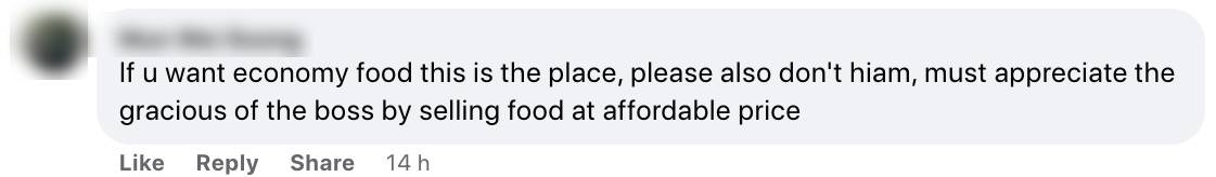 Another commenter, who was definitely feeling the pinch on behalf of the hawker, wrote: "Hopefully the stall owner can earn some profit… otherwise work for charity."