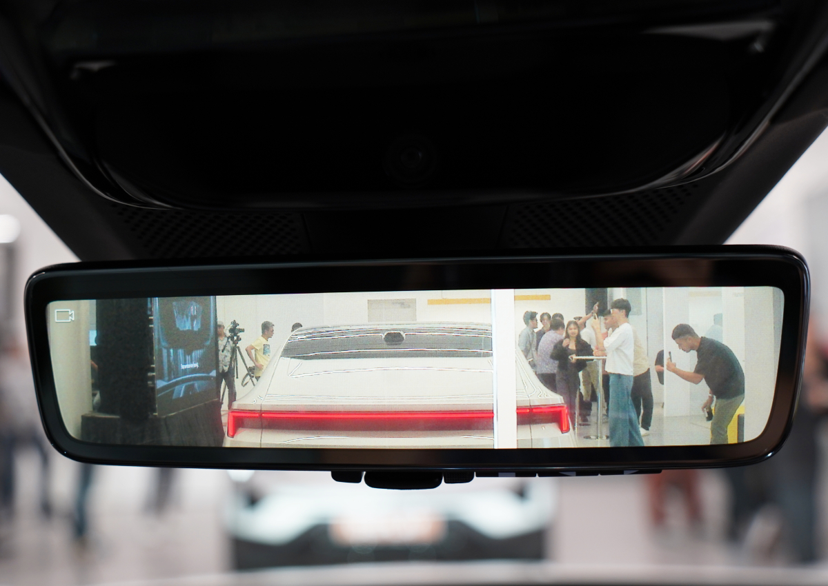 For drivers, rearward visibility is delivered via the roof-mounted rear camera that delivers a real-time feed to the high-definition screen that takes the place of the rear-view mirror in the car.