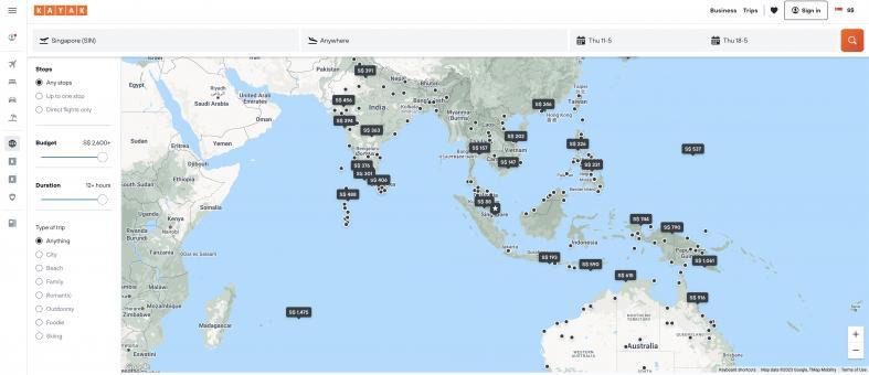 No concrete plans? Just want to go somewhere? Key in your dates into travel search engine Kayak's explore function and it will show you where flights are cheapest.