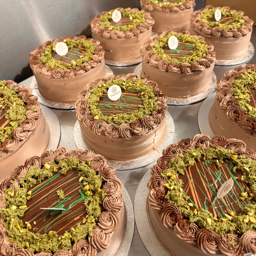 Wow everyone at your next Christmas gathering with this halal Pistachio Chocolate Kunafa Cake from Two Bake Boys.