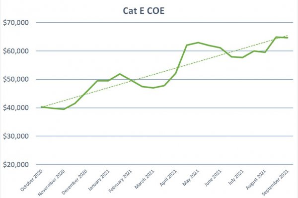 Premiums for Cat A, for cars up to 1,600cc in engine capacity and with an output of no more than 130bhp, increased by $311 (0.7 per cent) and ended at $47,000 this bidding round.