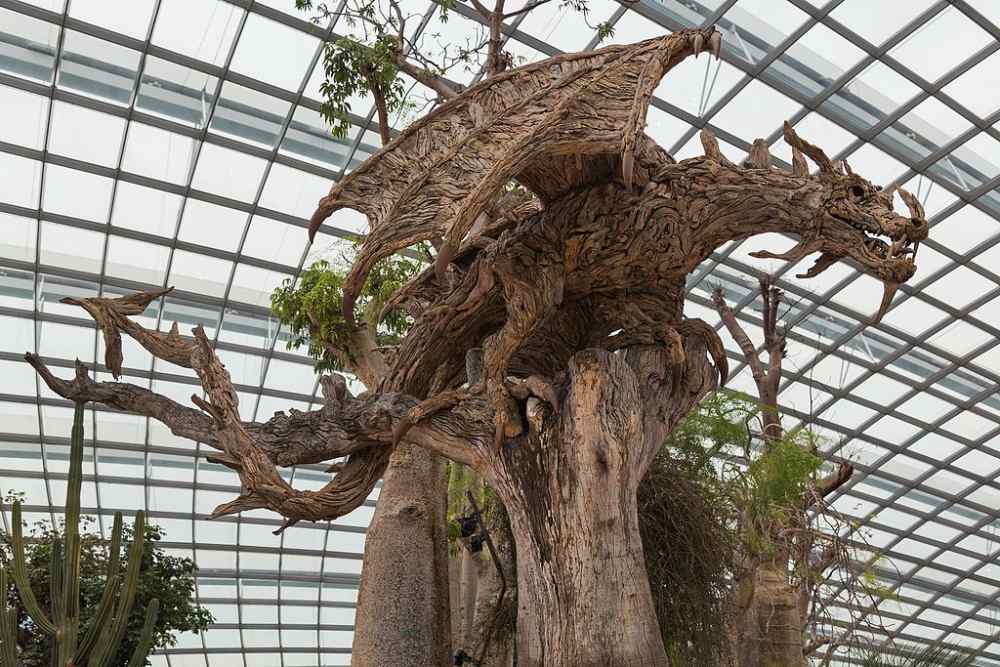If the Dahlia Dreams dragons aren't enough to whet your appetite for dragon sculptures, check out the permanent Wyvern sculpture amidst the Baobabs in the Flower Dome, also crafted by James Doran-Webb.