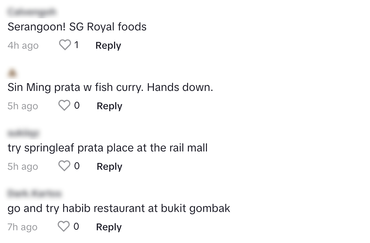 This included suggestions like RK Eating House and Springleaf Prata Place.