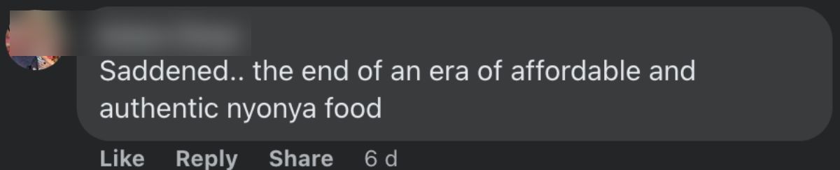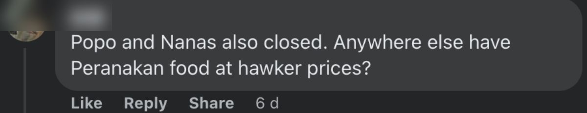 Others were scrambling in the comments section trying to source recommendations for "affordable and authentic Nyonya food" as the closure of Babas Peranakan follows that of another Peranakan hawker stall Popo & Nana’s Delights.