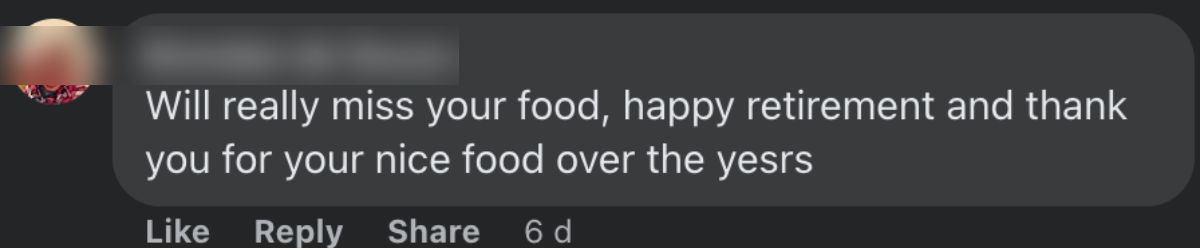Regardless, most comments did wish for Babas Peranakan boss Edwin to have a "happy retirement" and thank him for his "nice food over the years".