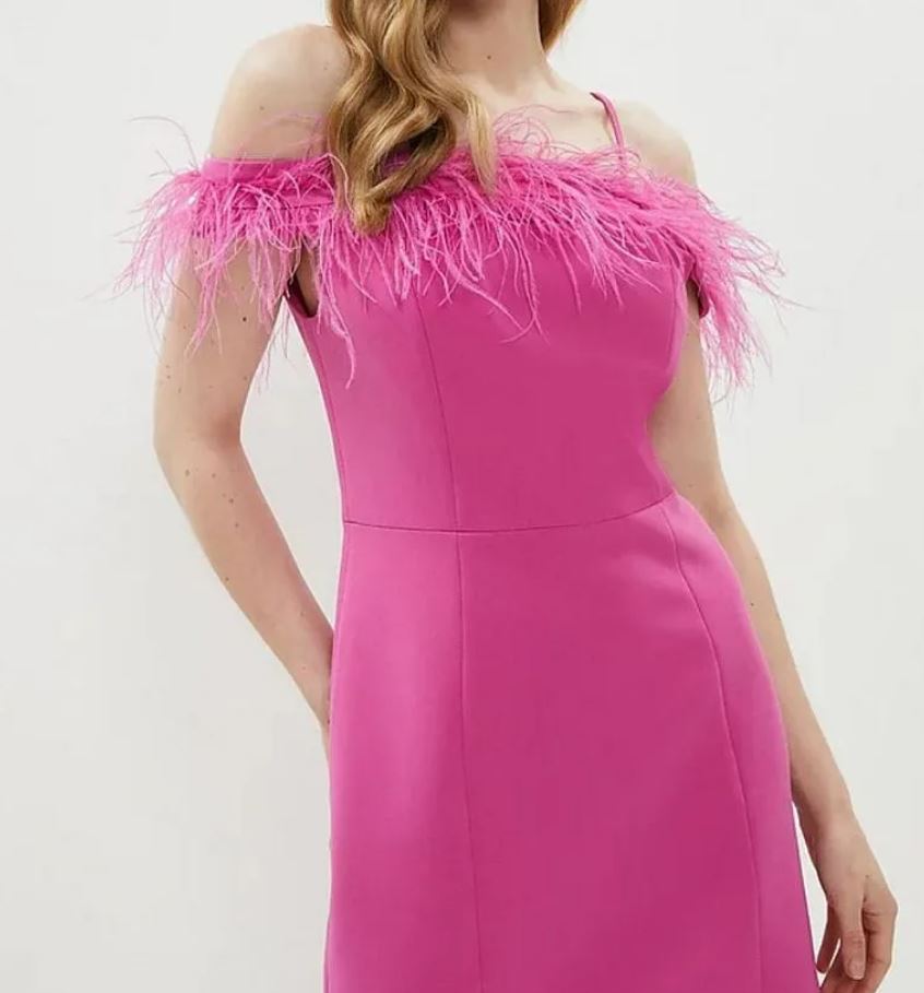 Pink knit skirt-dress with feather details, $557, Andreeva