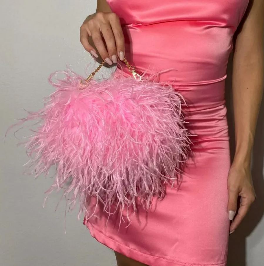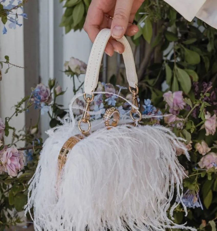 Odessa ostrich feather bag snow, $206, Mode & Affaire