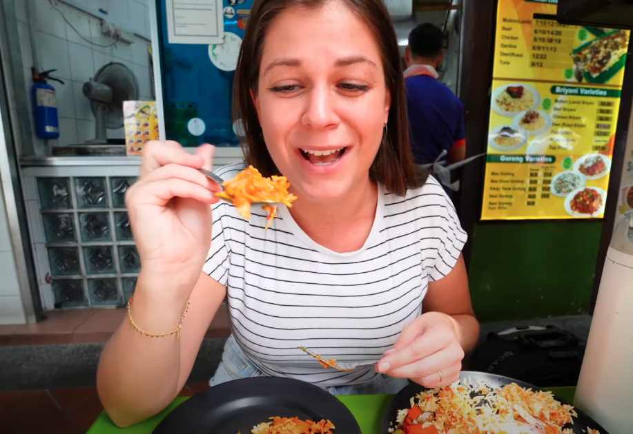 "Oh my god, that is heaven. It's so rich. It is spicy, but it is like a good spicy," a pleased Nicole said after having her first bite of some chicken biryani.